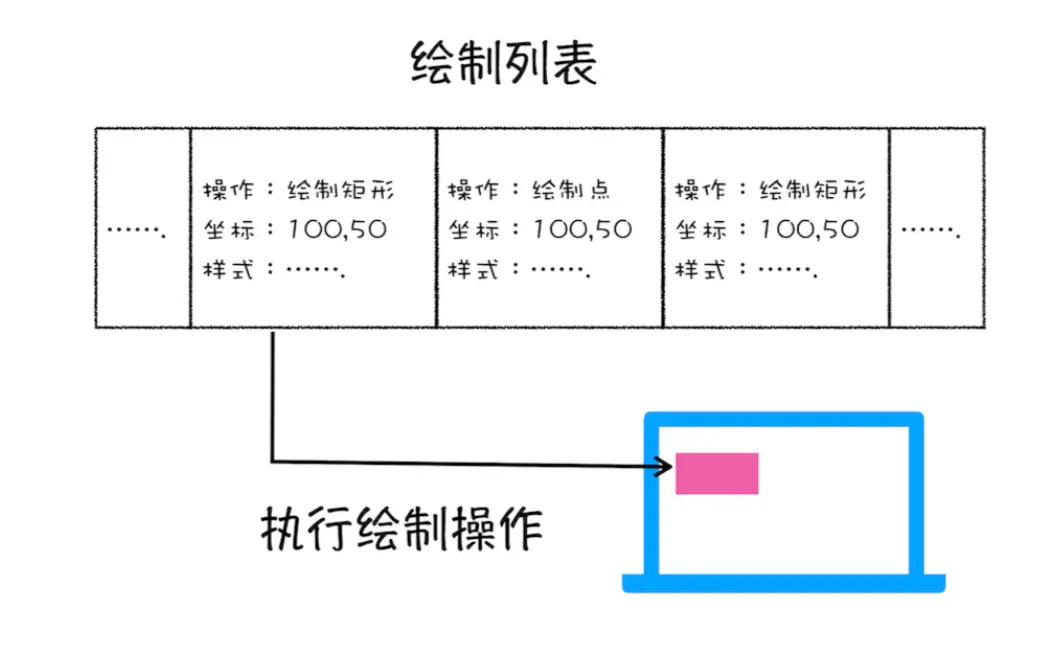 渲染引擎实现图层的绘制与之类似,会把一个图层的绘制拆分成很多小的绘制指令,然后再把这些指令