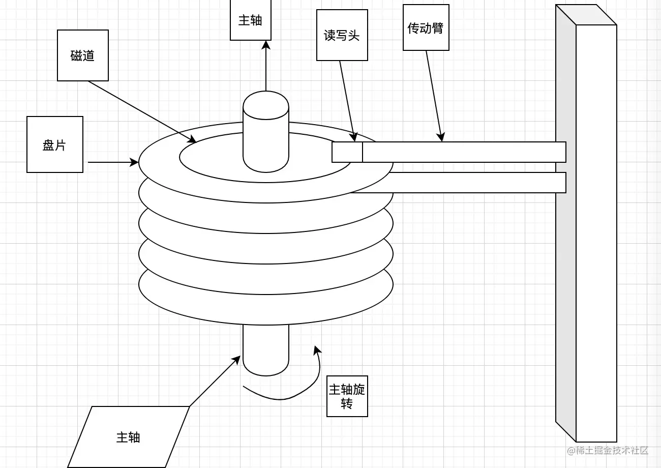 下面是机械硬盘的一个大致的结构图(图画的比较emmm....各位看官将就着看)