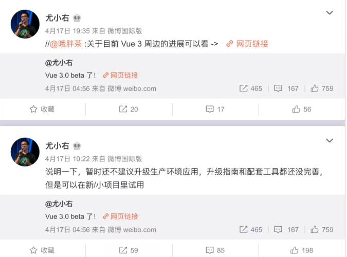 作为前端开发者,这几天想必大家都看到了Vue3.0的beta版新闻了,是的,尤大大在4.17号微博晒出了Vue3.0的beta链接,不少FEer开始兴奋,不过也有不少其它声音:『我学不动了』、『这不就是React』、『啥时候出正式版』;