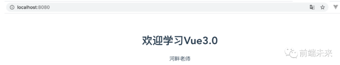// 打开 App.vue,删除多余代码<template> <div id="app"> <h1>{{title.name}}</h1> </div> <div> // 此处可并列多个div,不再要求一个根元素了 </div></template><script>import { reactive } from 'vue'export default { name: 'App', setup(){ const title = reactive({ name:'欢迎学习Vue3.0' }) return { title } }}</script><style>#app { text-align: center; color: #2c3e50; margin-top: 60px;}</style>