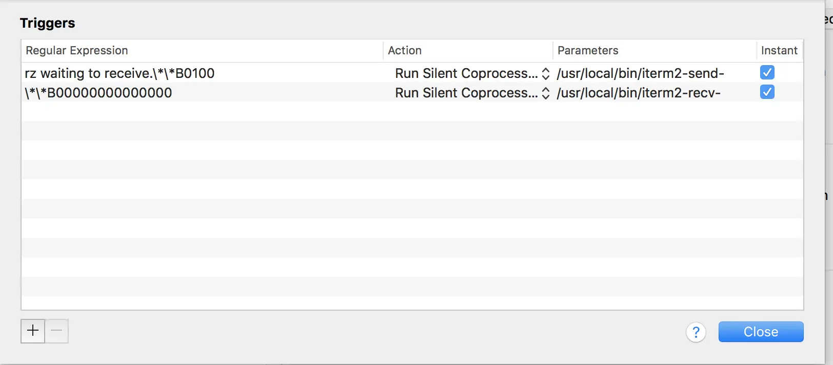 Parameters: /usr/local/bin/iterm2-recv-zmodem.sh
