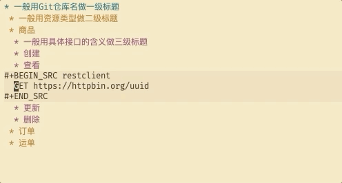 尽管org-mode提供了丰富的功能,但只是管理API测试用例的话,并用不上太多花里胡哨的东西,只需要org-mode的大纲功能和org-babel特性即可。