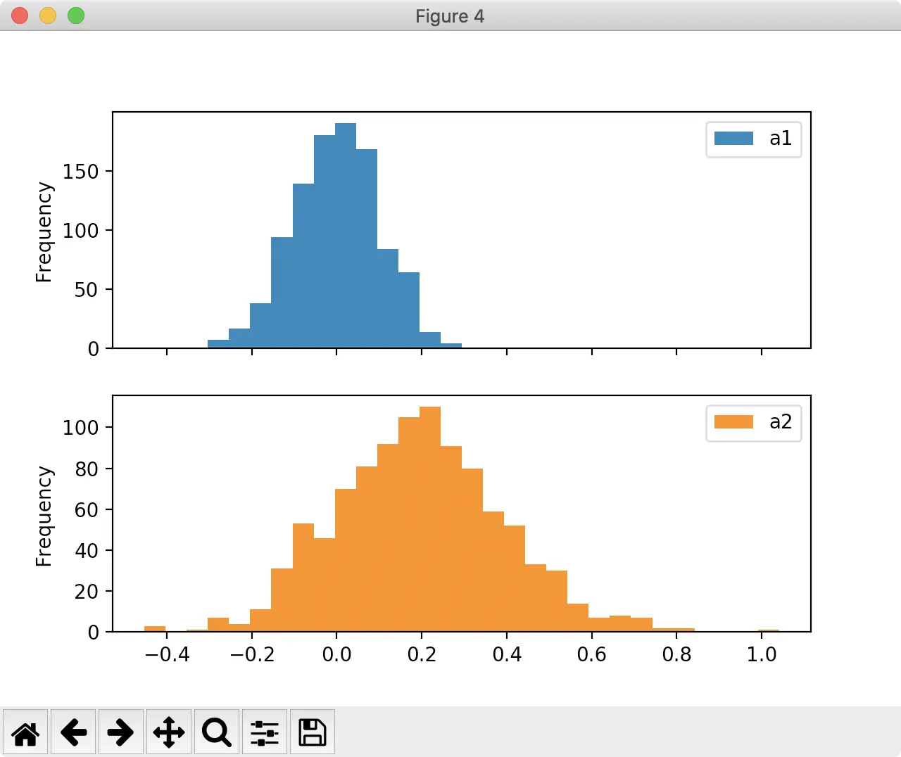 "a2": pd.np.random.normal(mu2, sigma2, n),