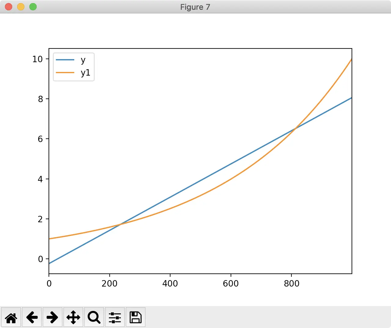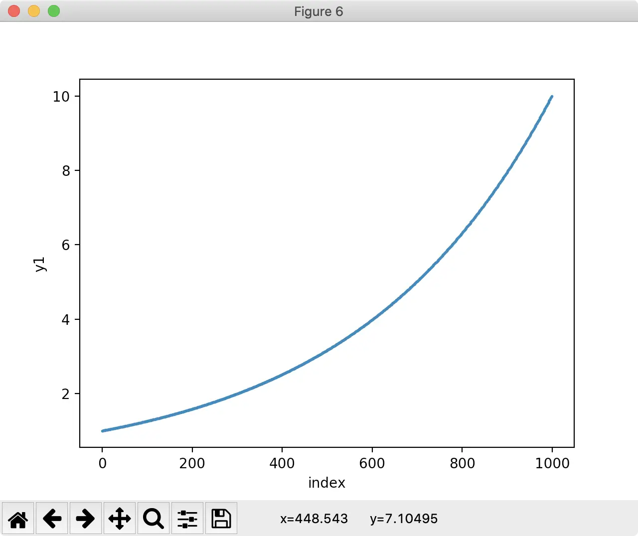 "y1": pd.np.logspace(0, 1, num=n),