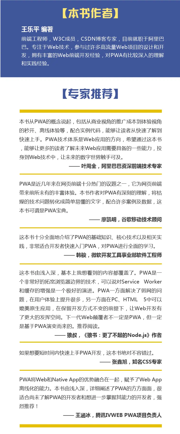 综上,这是一本值得期待的书,它在一定程度上弥补了国内PWA领域技术书籍的空白,并且将这个任务完成得相当漂亮。如果有人请我分享前端技术书单,我想这本书应该会位列其中。