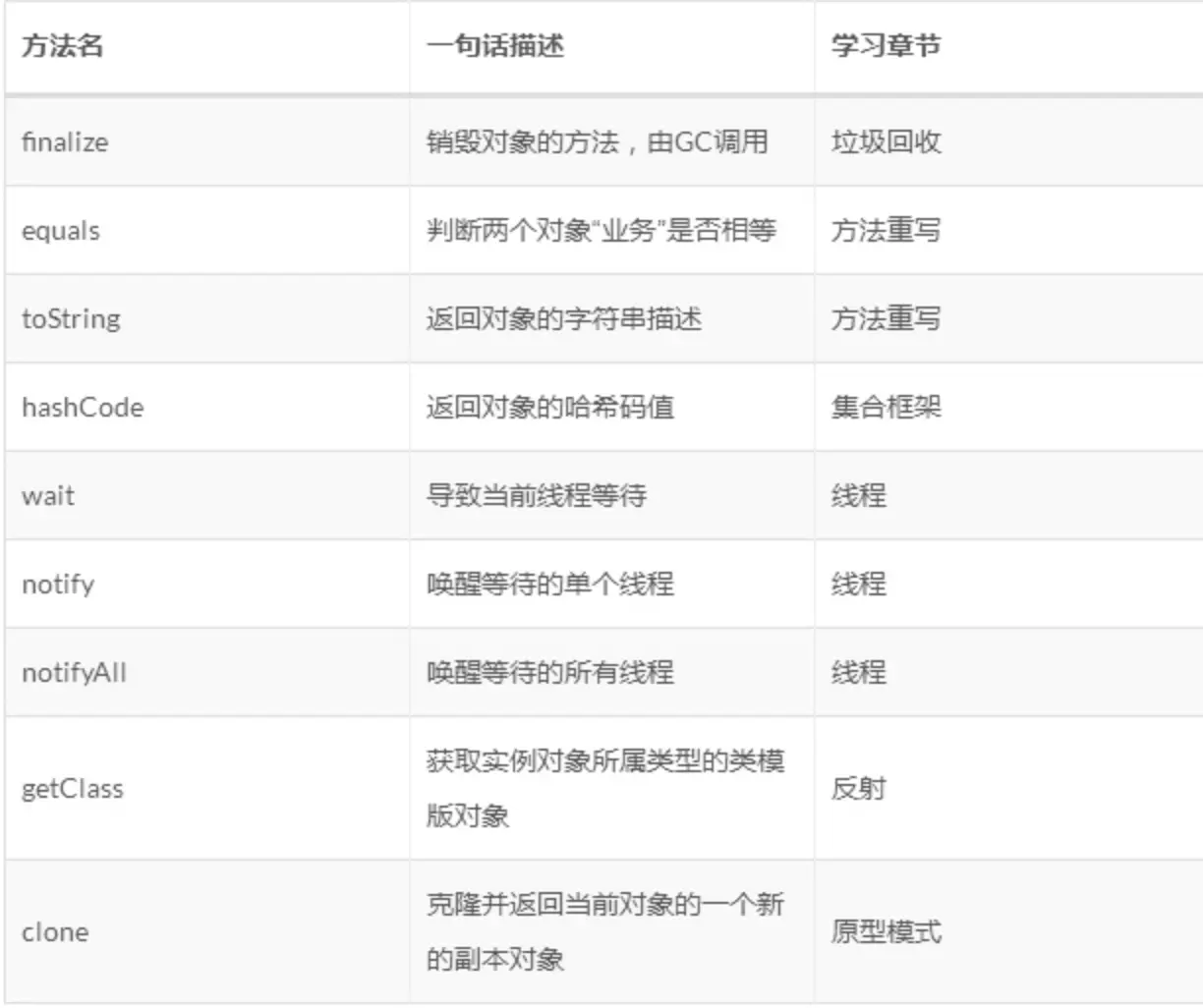 Java使用extends关键字实现单继承,而Java中所有类都会继承Object类,在Object类中有9种方法(如下图)会被所有类直接调用或者重写。