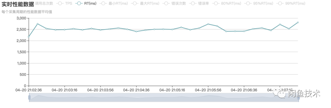 从下图可以看出,平均RT为2500ms左右,绝大多数请求都在超时状态。