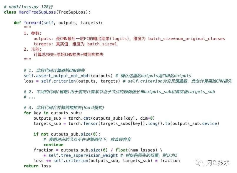 前面提到,总损失=原始CNN损失+树结构损失。具体地,以Hard模式为例,如下代码解释了如何计算决策路径上的树结构损失,并合并到总损失当中。