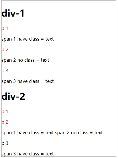 <span>span 2 no class = text</span>