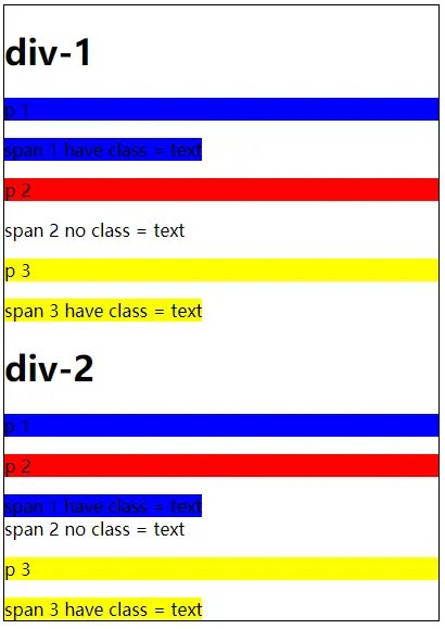 <span class="text">span 1 have class = text</span>