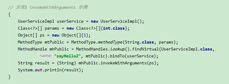 invokeWithArguments 方法调用则可以Object[] 数组的形式进行调用