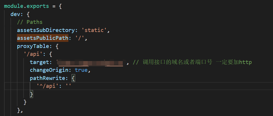 第二步:因为在开发时 会有跨域问题 我们为了方便会配置跨域代理比如proxyTable 一般都这样写,因为要部署到服务器上所以到服务器上之后就不存在跨域了,注销掉他。