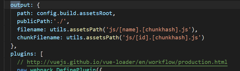 第四步: 在build/utils/webpack.prod.conf.js 中的output中添加一条 publicPath:'./'