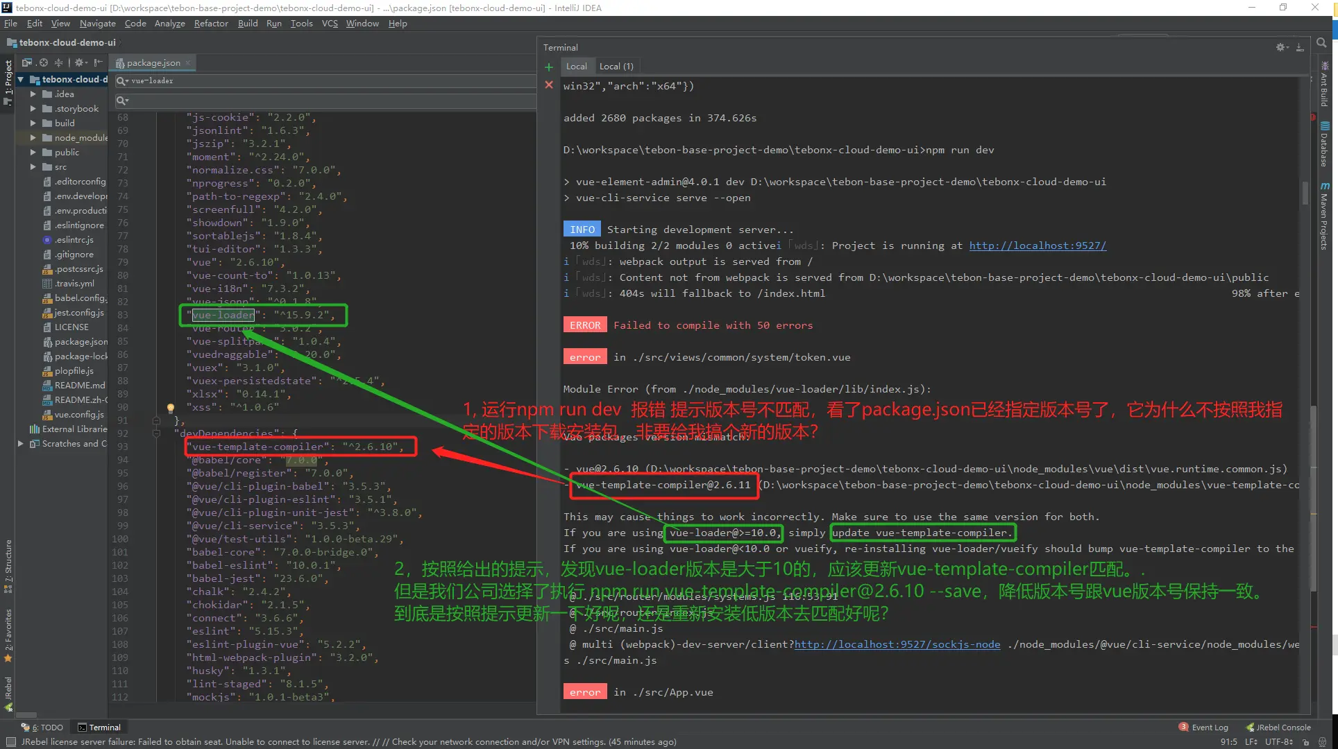 2 npm run dev 报错版本不一致