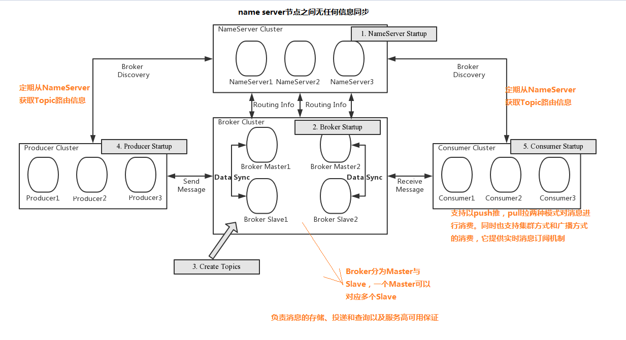 Broker启动,跟所有的NameServer保持长连接,定时发送心跳包。心跳包中包含当前Broker信息(IP+端口等)以及存储所有Topic信息。注册成功后,NameServer集群中就有Topic跟Broker的映射关系。