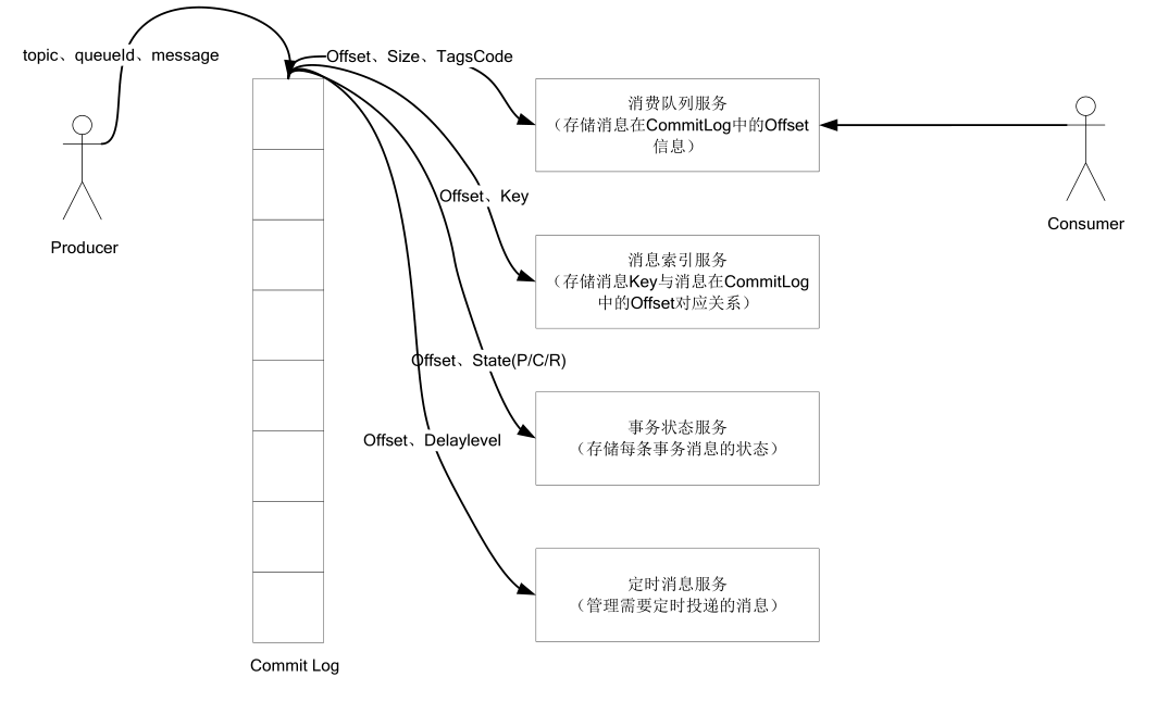在 RocketMQ 中,所有消息队列都是持久化,长度无限的数据结构,所谓长度无限是指队列中的每个存储 单元都是定长,访问其中的存储单元使用 Offset 来访问,offset 为 java long 类型,64 位,理论上在 100 年内不会溢出,所以认为是长度无限,另外队列中只保存最近几天的数据,之前的数据会按照过期时间来 删除。 也可以认为 Message Queue 是一个长度无限的数组,offset 就是下标。