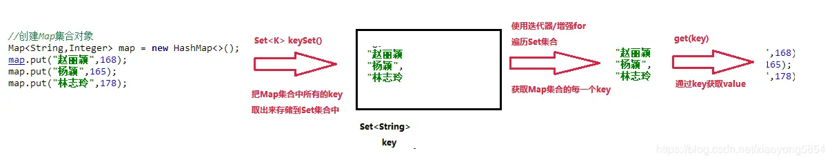 //1.使用Map集合中的方法keySet(),把Map集合所有的key取出来,存储到一个Set集合中
