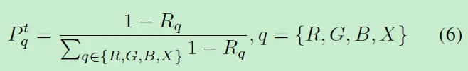 在之前生成光谱图像时候,本来是R,G,B,X中等概率随机选取一种来进行训练。作者认为这样做太粗糙,也不是最优的,因为前面生成光谱图像的随机性,很可能网络会重复学习某一种光谱而忽视了其他的。Dynamic Hard Spectrum Mining解决的就是这个问题,作者设计了这样的机制可以动态地选择某个较难的光谱图像,提高其采样概率以此加入训练。