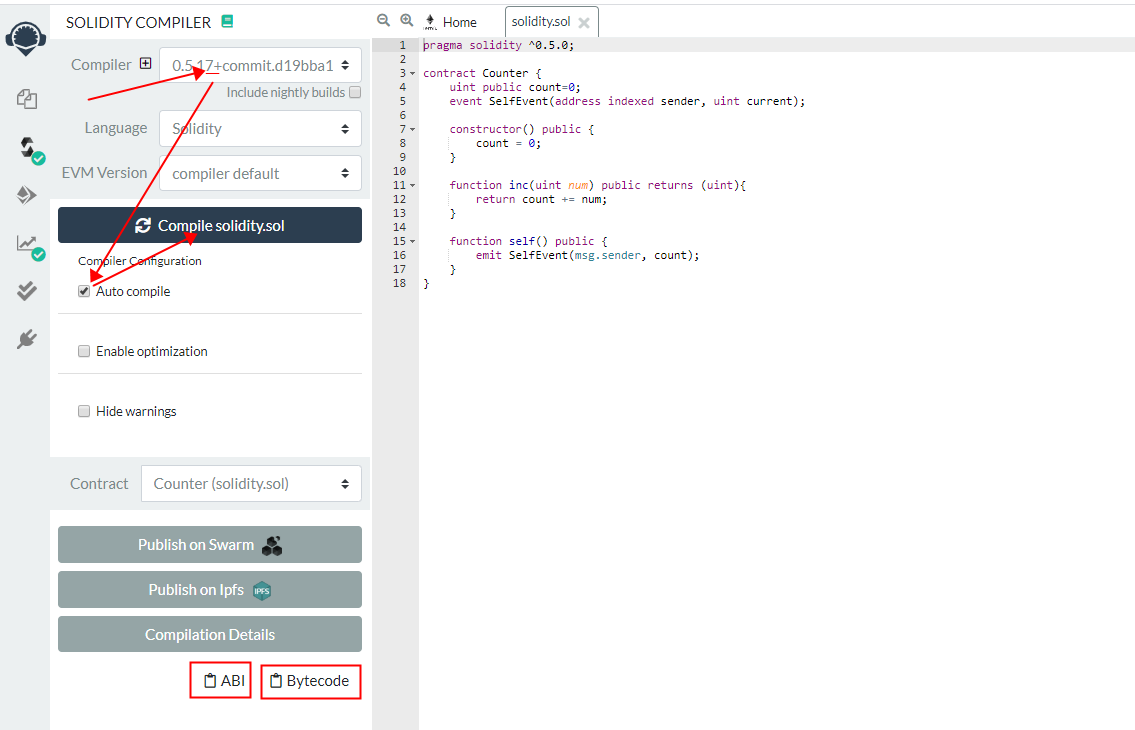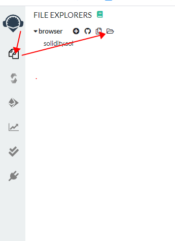 先创建sol这个文件夹,然后创建这三个文件。test.sol就是上面我们的合约代码直接拷入文件中。abi.json和code.json两个文件是通过这个工具 remix 在线生成的。我来说下生成过程。 首先我们将里面的文件全部删除,然后点击这里找到我们的项目目录下的test.sol 文件