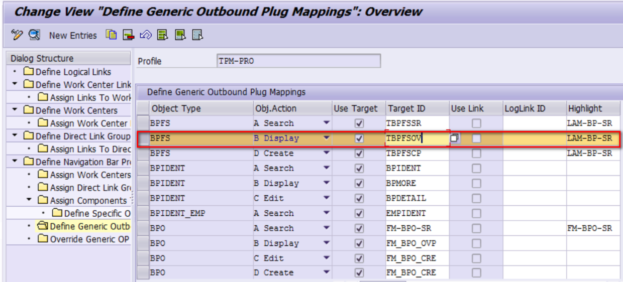 The mapping between a target ID and corresponding UI component is maintained in customizing below: