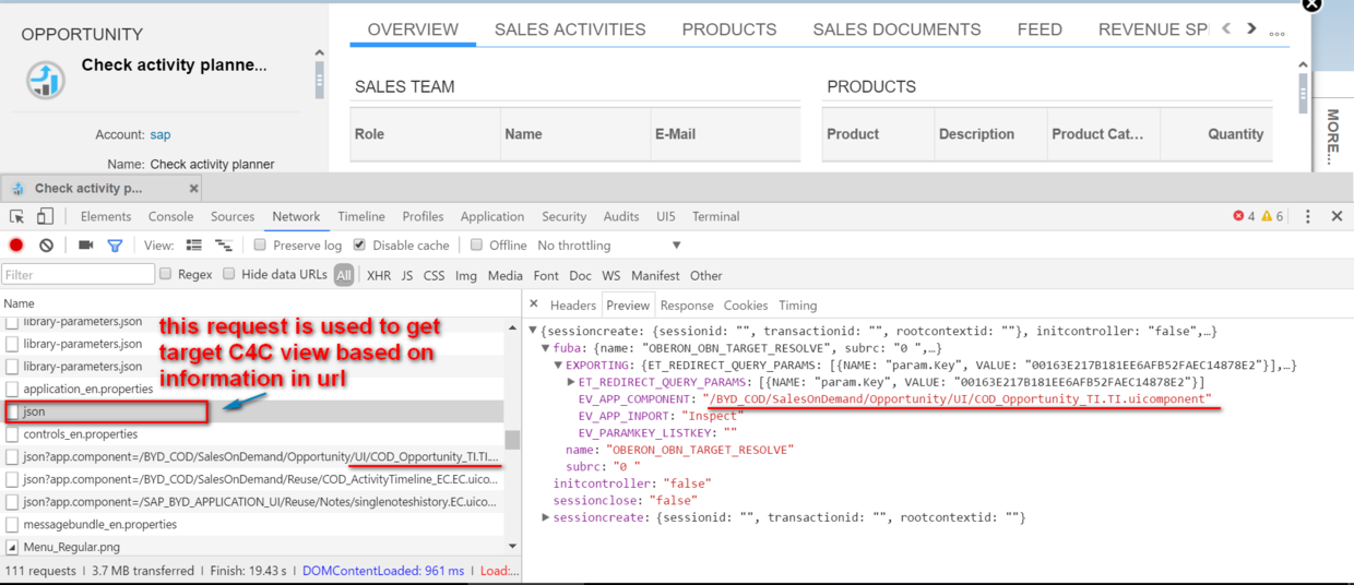 If you monitor network request in Chrome development tool, it is easy to find out that the navigation target, Opportunity TI page, is resolved by a ABAP backend function module OBERON_OBN_TARGET_RESOLVE, which is not visible to C4C customer & partner.