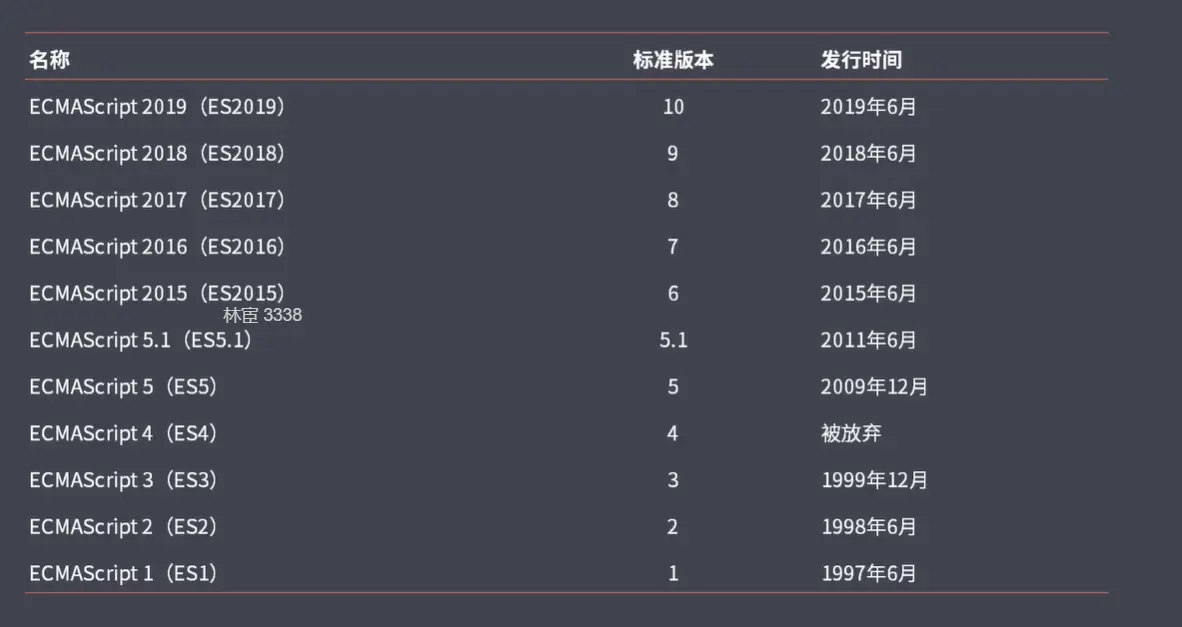 从 2015年开始保持每年迭代一次,也引入了许多的新特性,因此这门语言也变得越来越高级。es版本发型概览如下图所示: