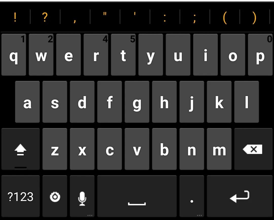 初始安装后,黑客键盘会呈现出如上所示的布局,与大部分手机输入法布局类似,但最上方多出了一行特殊符号列表。