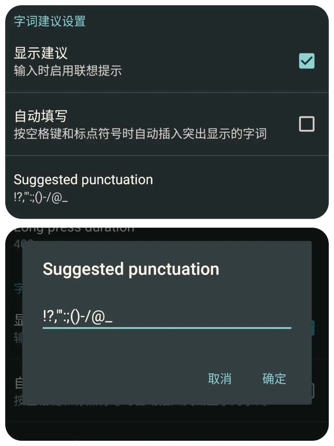黑客键盘—设置—字词建议设置—Suggested punctuation,直接更换你需要的特殊符号即可。