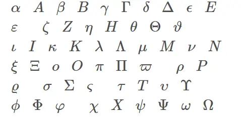 \phi \Phi \varphi \chi X \psi \Psi \omega \Omega