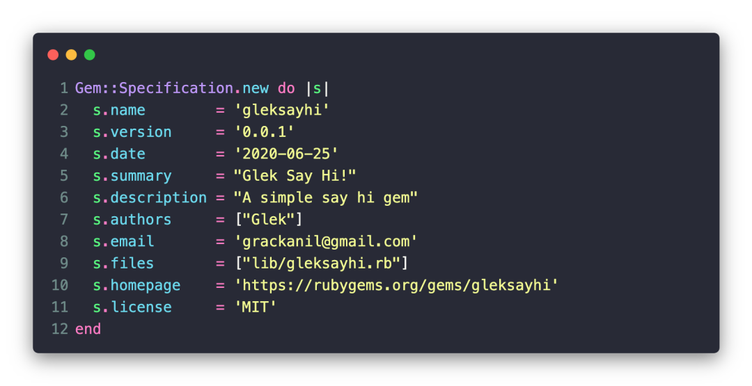 新建 gleksayhi.gemspec