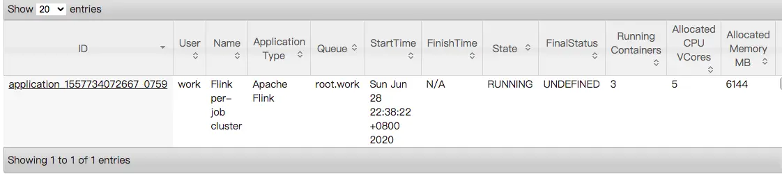 提交成功之后,我们会在yarn的管理页面看到一个类似的任务