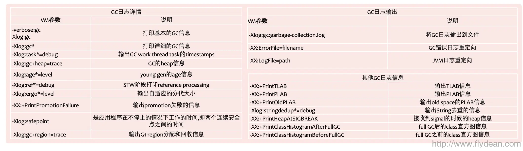 我们看下常用的Xlog和GC日志参数: