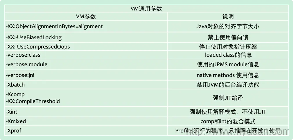 下面是通用的VM参数: