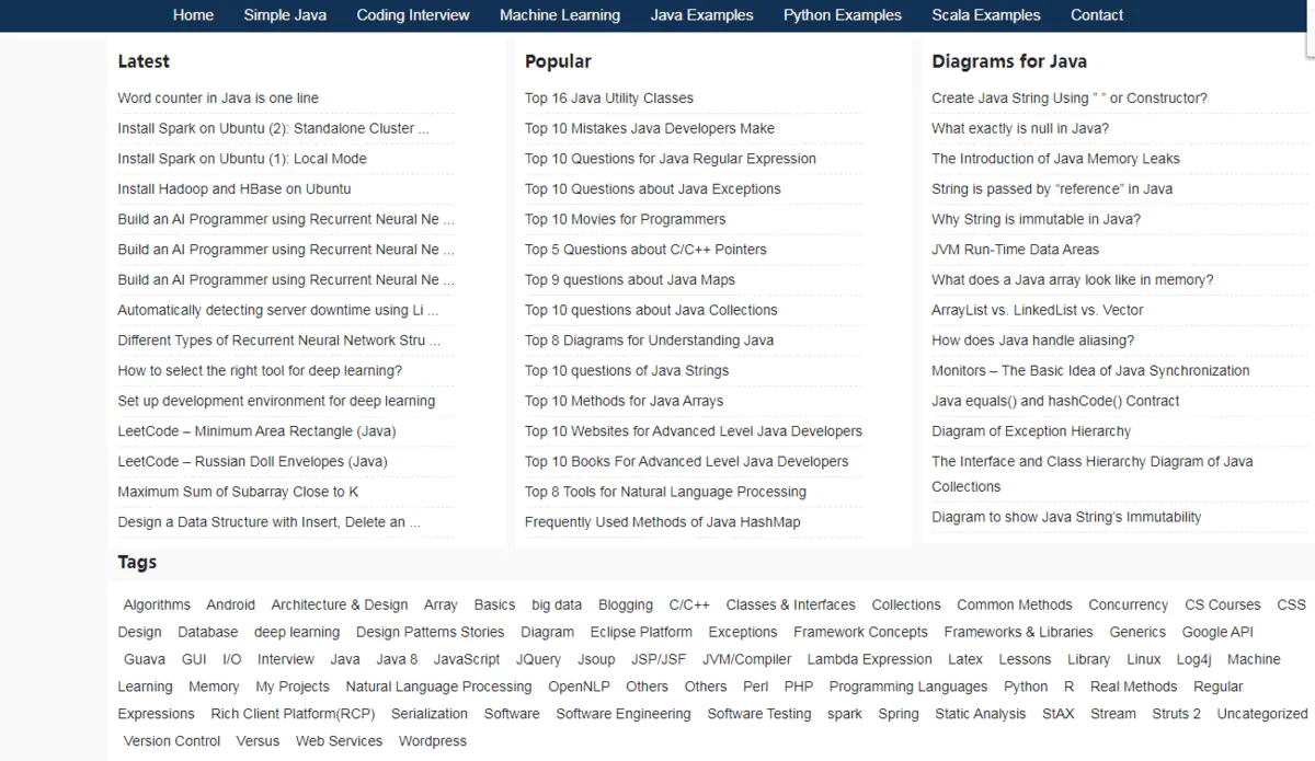 这个网站包含了大量的 Java 教程 , 涉及各种各样的话题。其中很多文章都写的很好 , 并且有图片、插图进行说明。它可以被用来当作深度学习的教科书。英文能力有限的话,可以使用谷歌翻译。