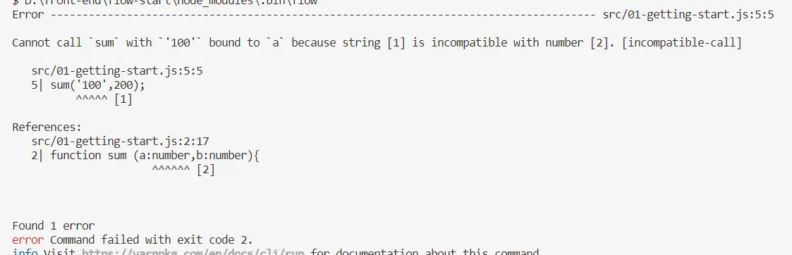 在js 代码中加入了flow的类型之后,执行代码会报错如下图所示: