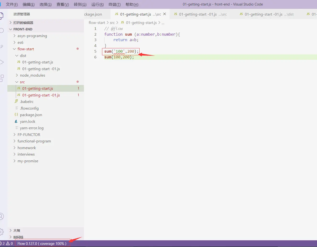 在vscode 中打开 查看-》 扩展 ,在搜索框中输入 flow language support 安装即可,安装完之后写完代码保存后就可以帮你运行监测出问题
