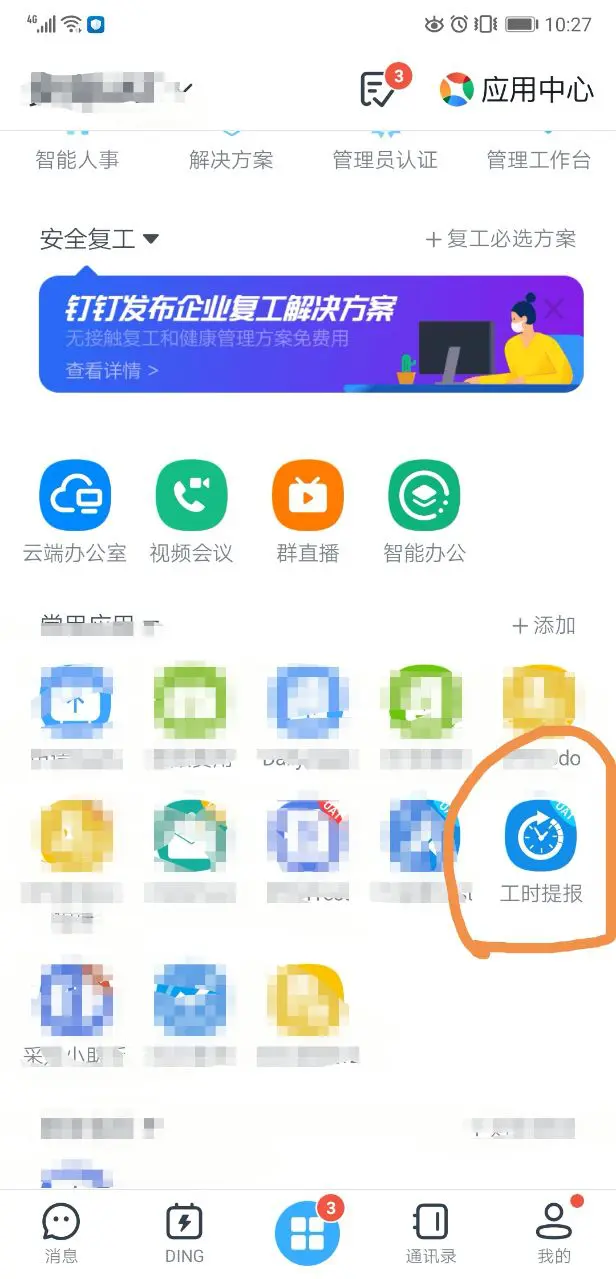 手机打开钉钉企业内部应用如图