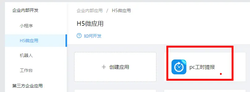 先创建一个H5微应用