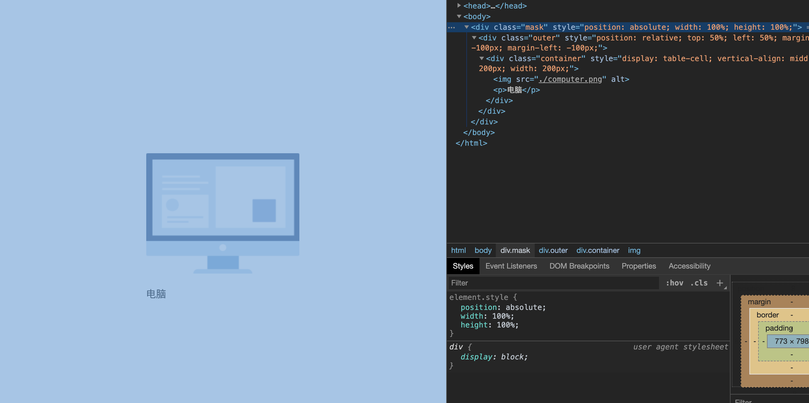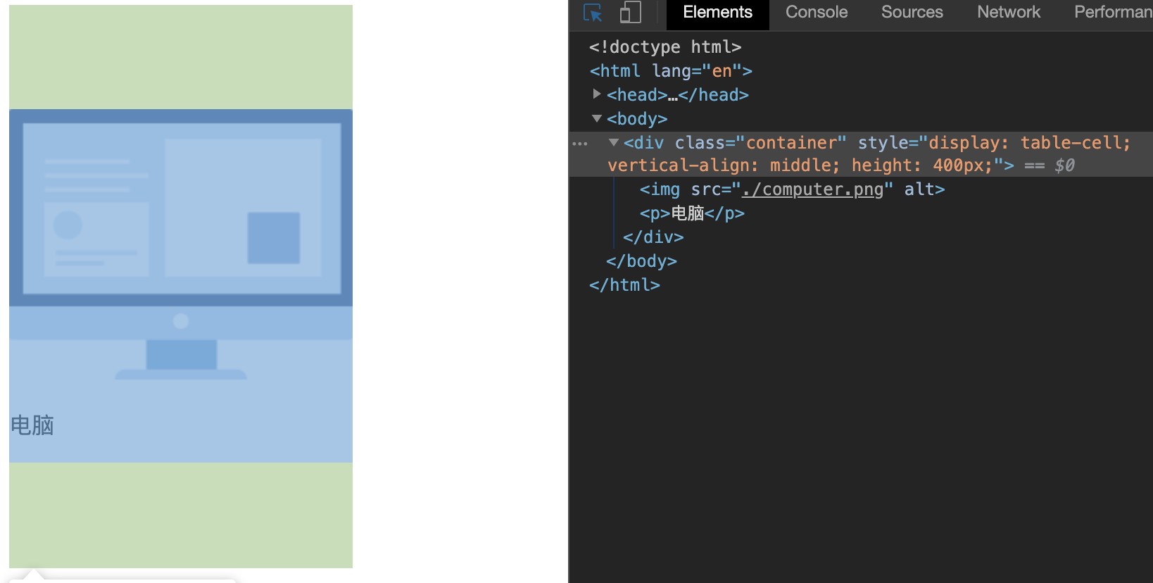 container需要设置position为absolute,table-cell属性就会失效。因为设置position: absolute就会把元素display强制设置为block类型。解决办法还是在外层套一层div容器,将position: absolute属性作用于这个容器上。