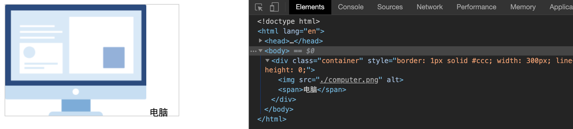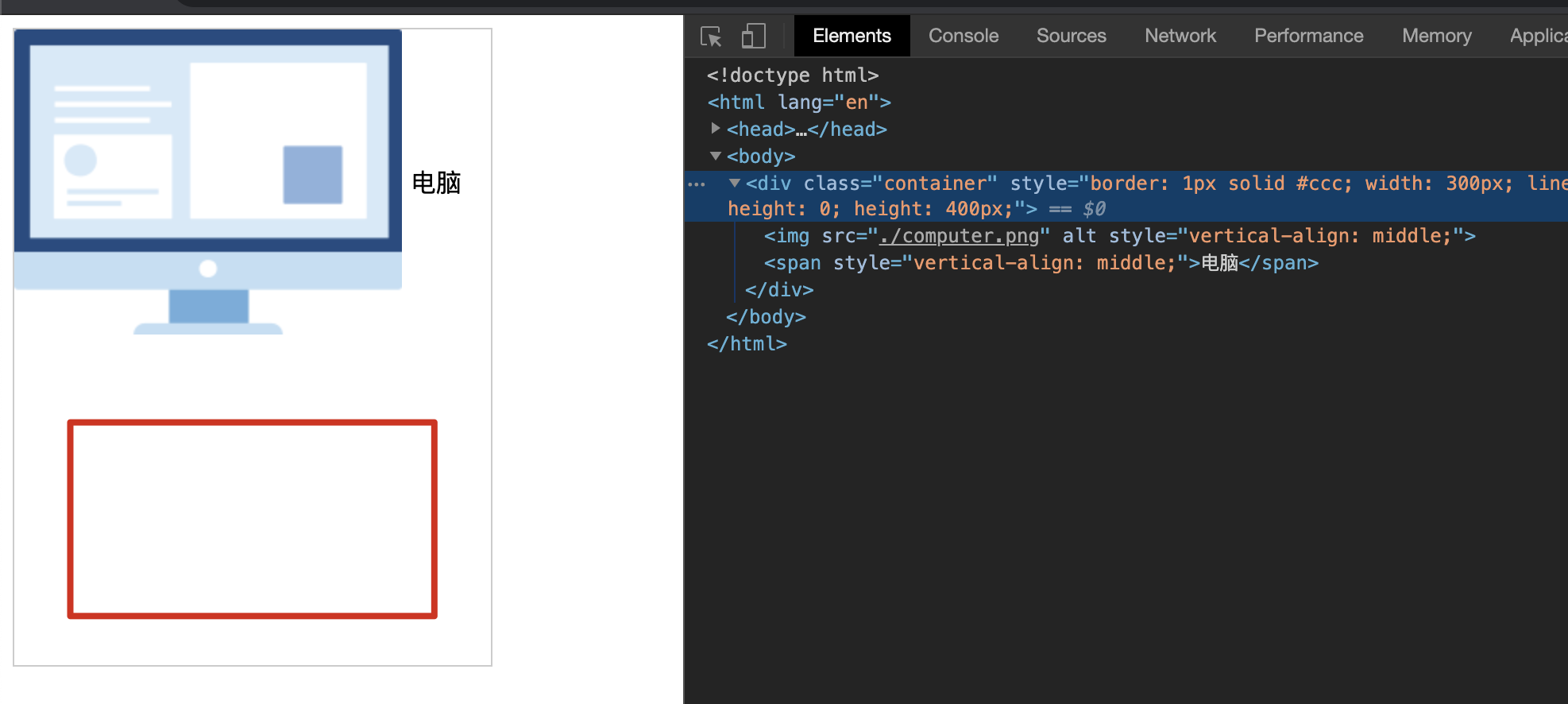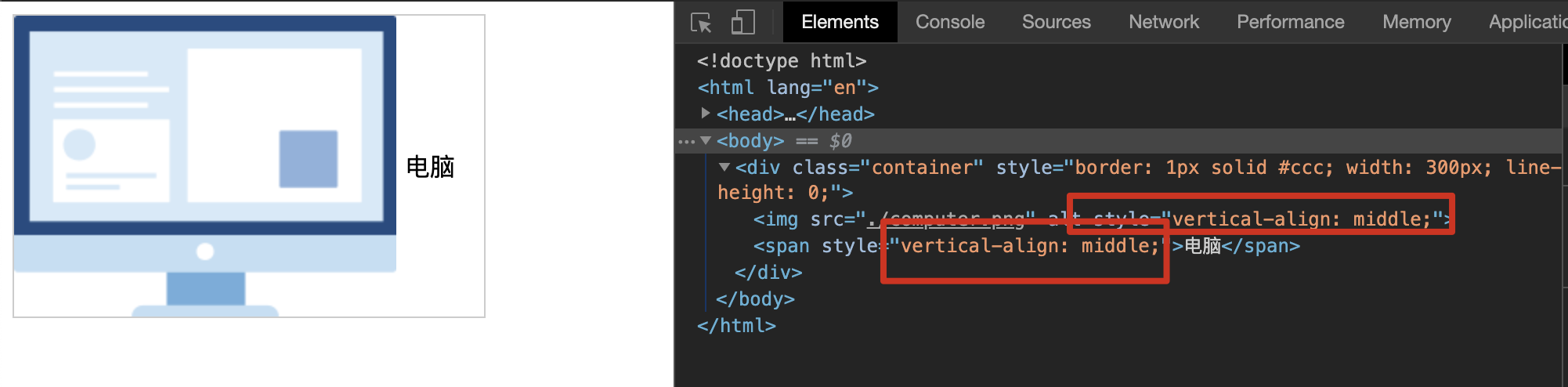 来看这个例子,一张图片和文字进行居中。如下图所示: