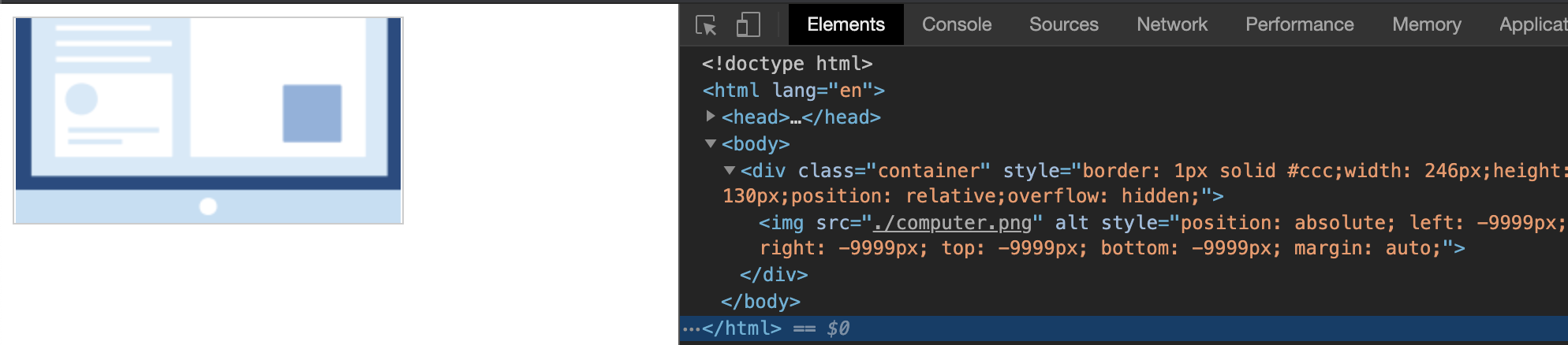 如果图片比container大,这种方法就不适用了。因为有一个种比较常见的场景:图片有一边和contianer一样大,另一边按图片的比例缩放,图片居中显示,超出的截断。这种情况下,只需把left/right/top/bottom设置为一个很大的负值即可。