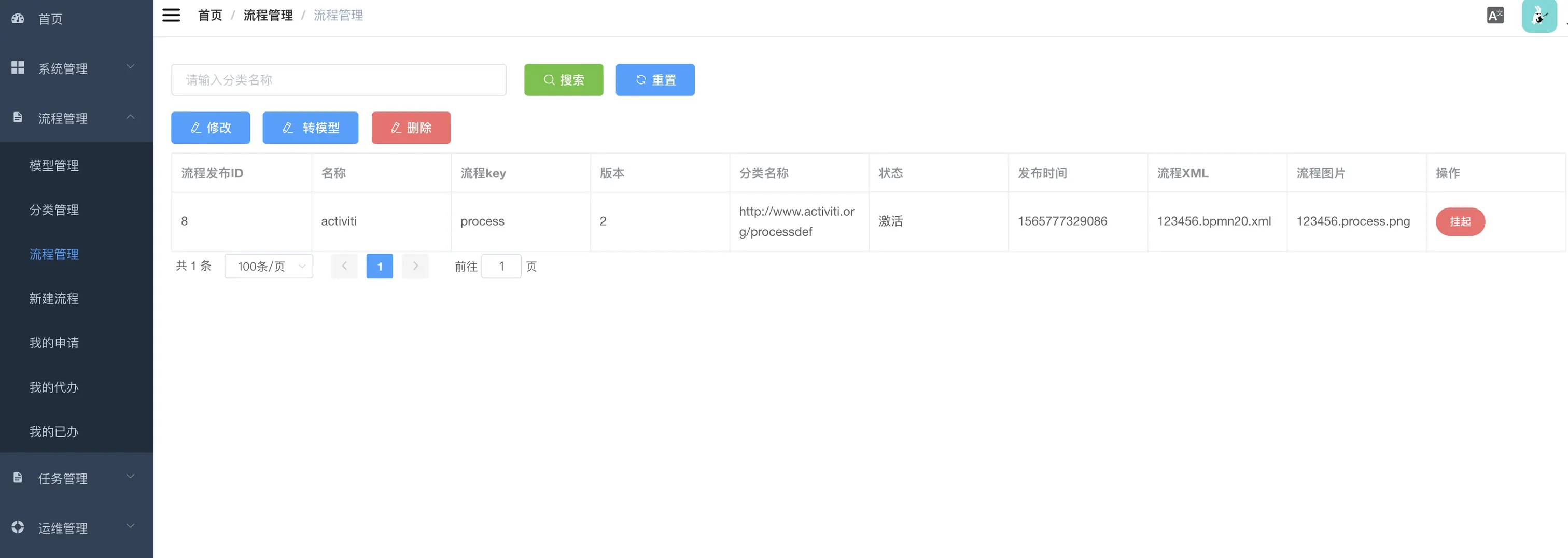 流程管理界面: