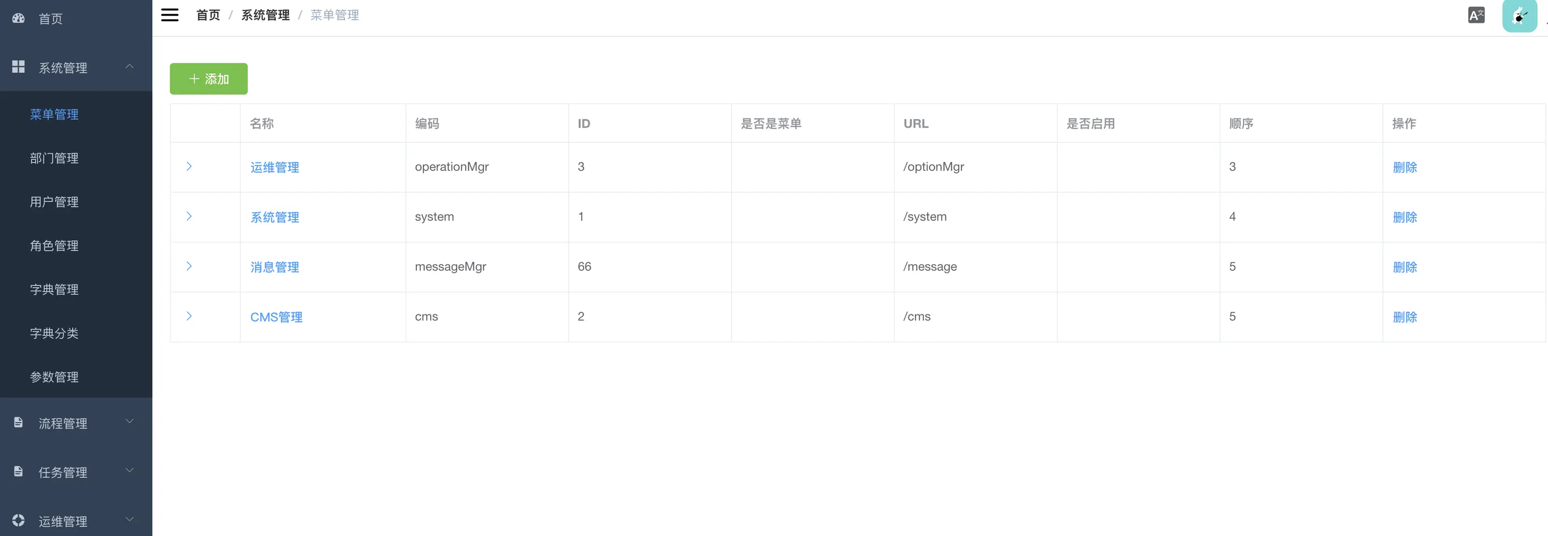 - 菜单管理