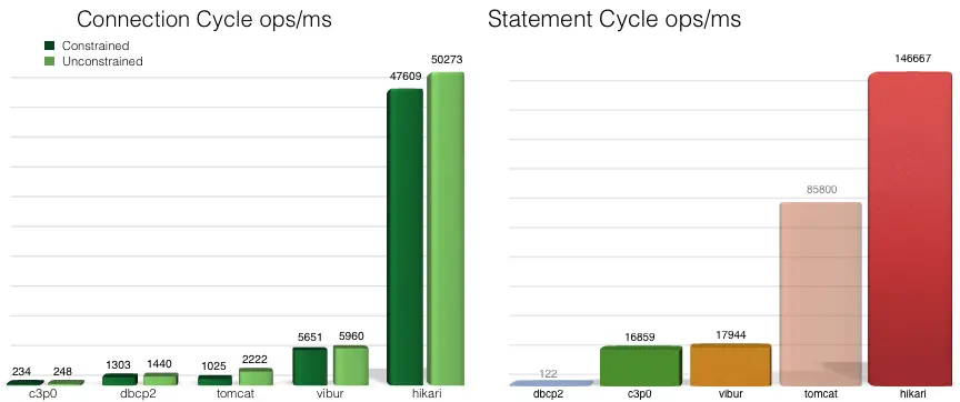从上述结果可以看出HikariCP的性能远高于c3p0、tomcat等连接池,以致后来BoneCP作者都放弃了维护,在Github项目主页推荐大家使用HikariCP。另外,Spring Boot将在2.0版本中把HikariCP作为其默认的JDBC连接池。