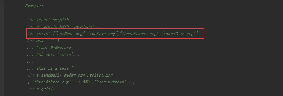 sendmail查源码,python/lib/smtplib.py大概690行左右,或者搜索tolist。