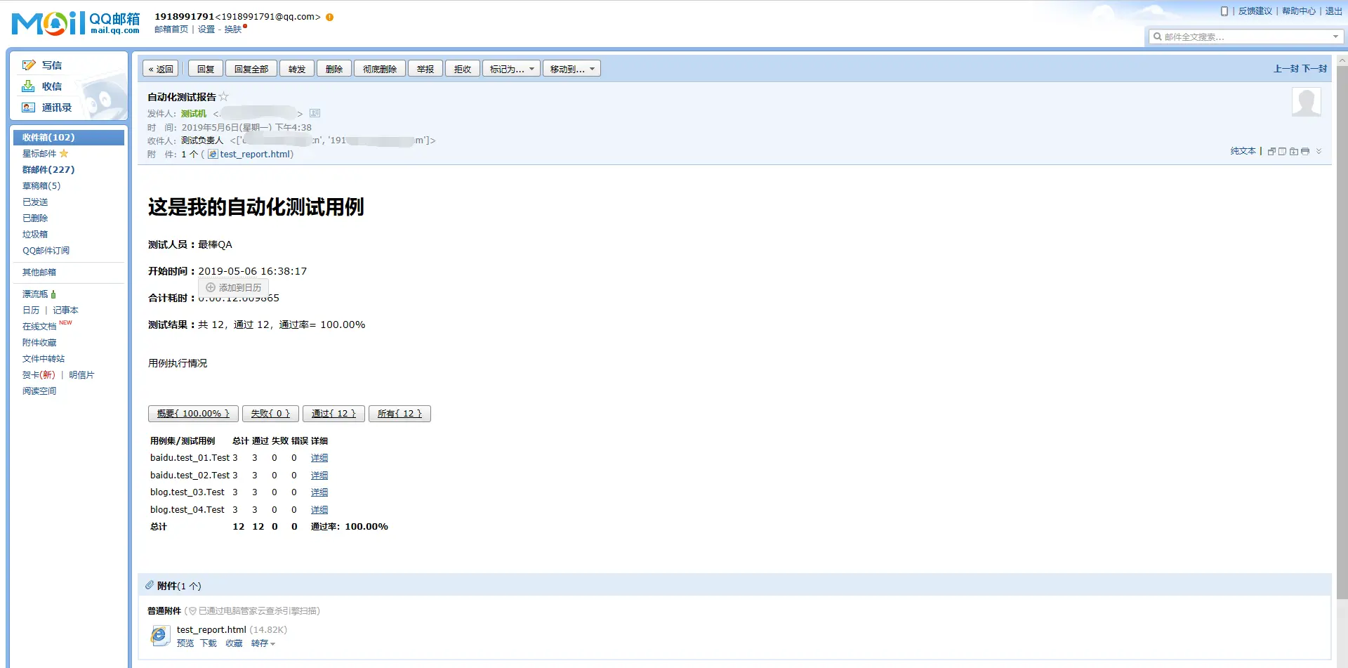 上一篇,我们虽然已经将生成的最新的测试报告发出去了,但是MIMEText 只能发送正文,无法带附件,因此我还需要继续改造我们的代码,实现可以发送带有附件的邮件。发送带附件的需要导入另外一个模块 MIMEMultipart。还有就是测