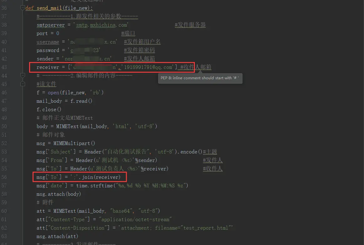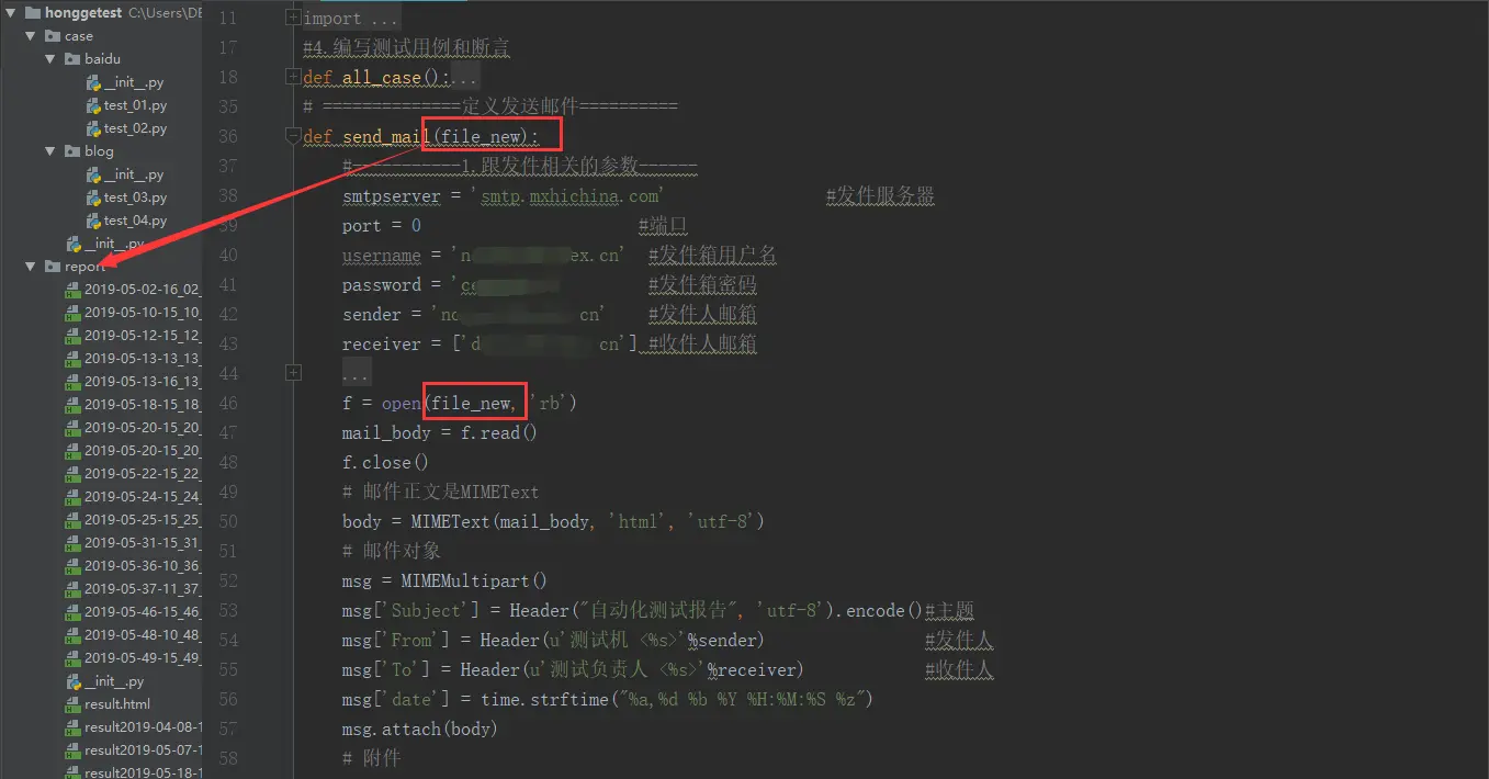 from email.mime.multipart import MIMEMultipart2、先读取要发送文件的内容,file_new 是测试报告路径的参数名