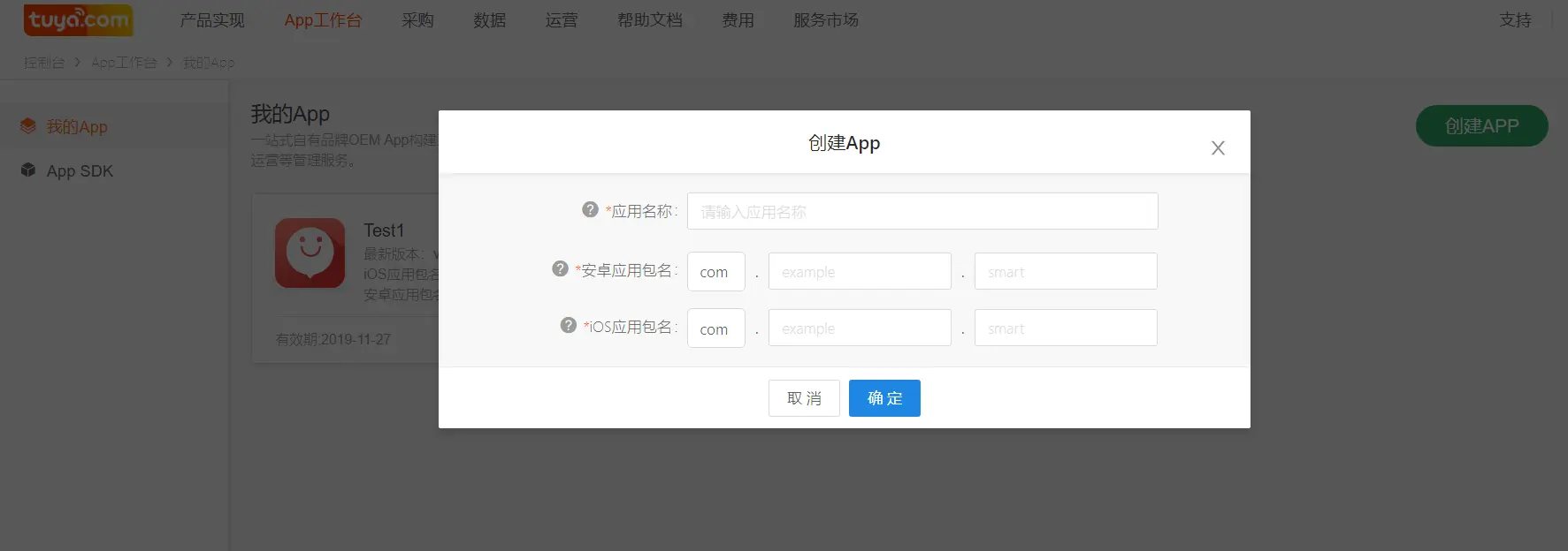 当机器功能开发完成后,将涉及自有品牌App的构建。涂鸦平台提供在线OEM App的功能。