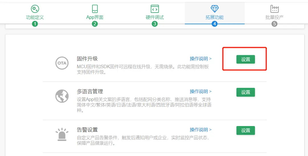 Step6 - 云端配置:配置App界面多国语言、申请开通智能音箱、设备OTA升级等核心操作;