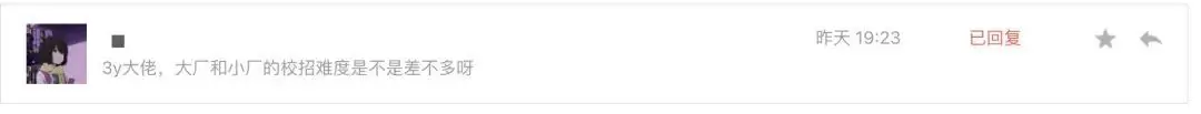 三歪毕业于一个九流的学校,那三歪是怎么知道有「校招」这一回事的呢?学校自然是没有告诉我的,身边的同学也几乎都不知道的,我在奋战秋招的那段时间也没有小伙伴跟我一起去跑各大院校的宣讲会。